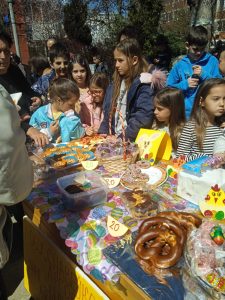 По повод празникот Велигден на градскиот плоштад во Ресен беше реализиран хепенинг на кој учествуваа ученици од I-V одд од сите училишта .Учество зеде и нашето училиште и се представи со продажен штанд декориран со симболите за самиот празник (Велигденски јајца,украси идр.)